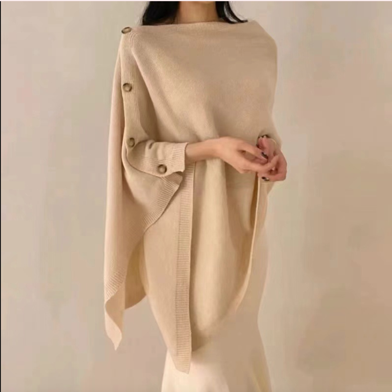 Gebreide Ponchomantel met Knopen – Elegant en Tijdloos voor Dames