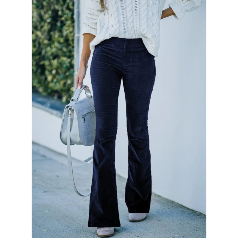 Dames Flared Corduroy Broek met Elastische Taille