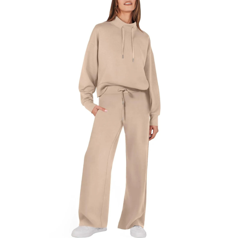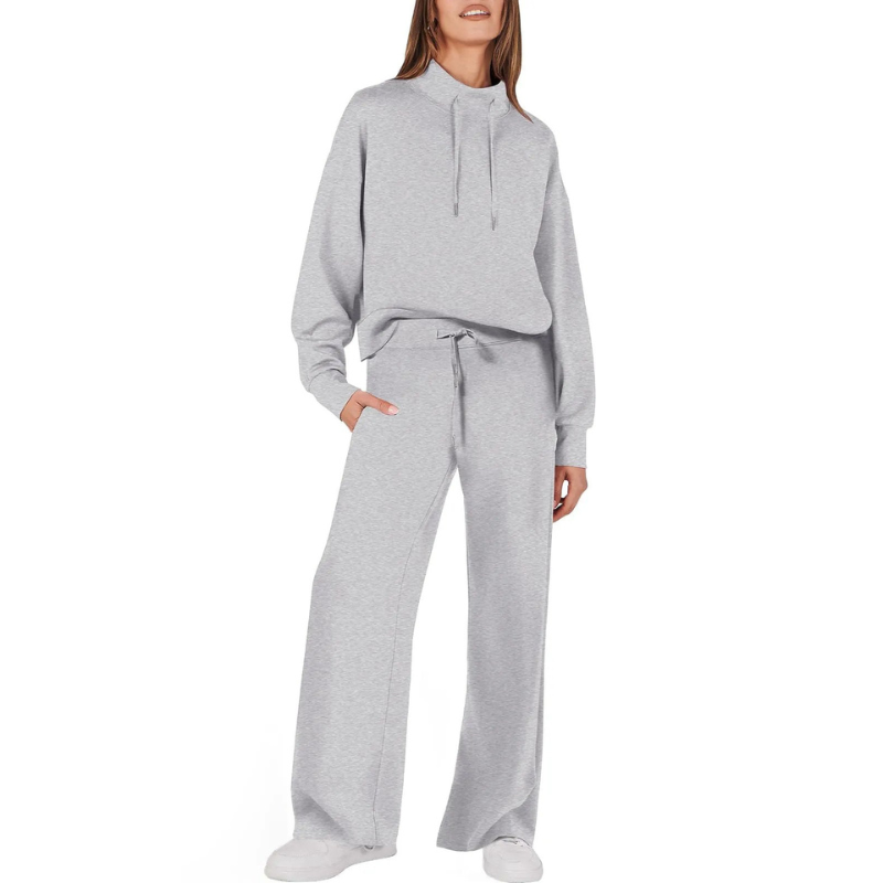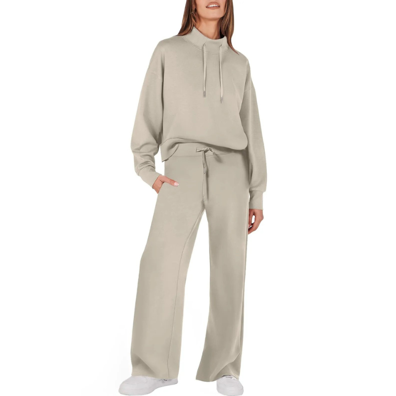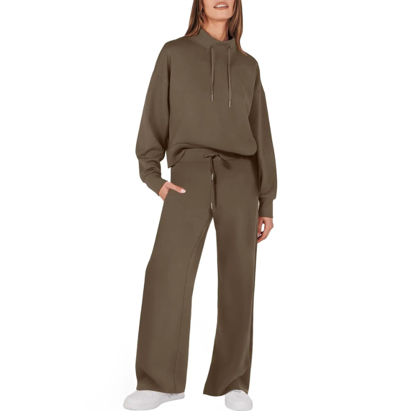 Een krachtig silhouet met een verfijnde uitstraling. Dit tweedelige damespak is ontworpen voor vrouwen die stijl en comfort moeiteloos willen combineren.