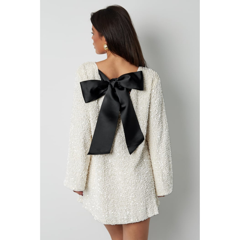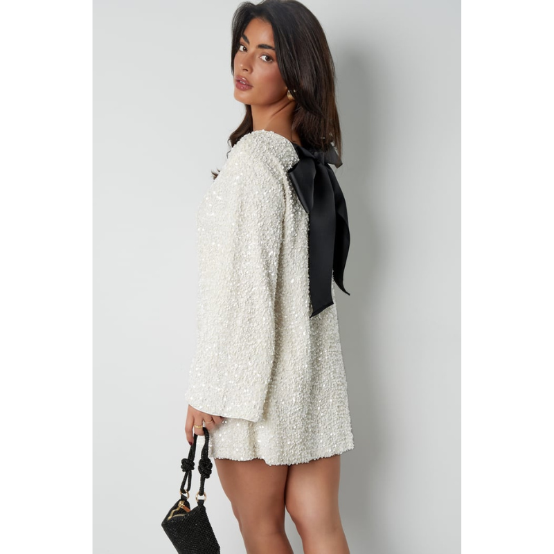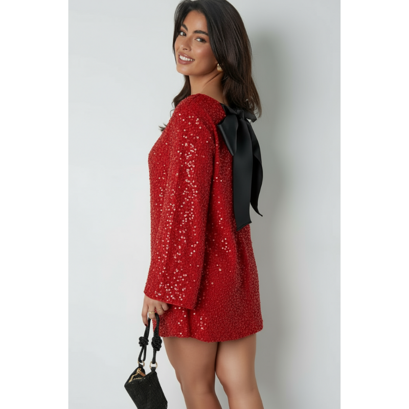 Glamour Mini Jurk met Pailletten en Satijnen Strik | Dames Feestjurk Pailletten | Elegante Look & Strikdetail | Satino Mutti