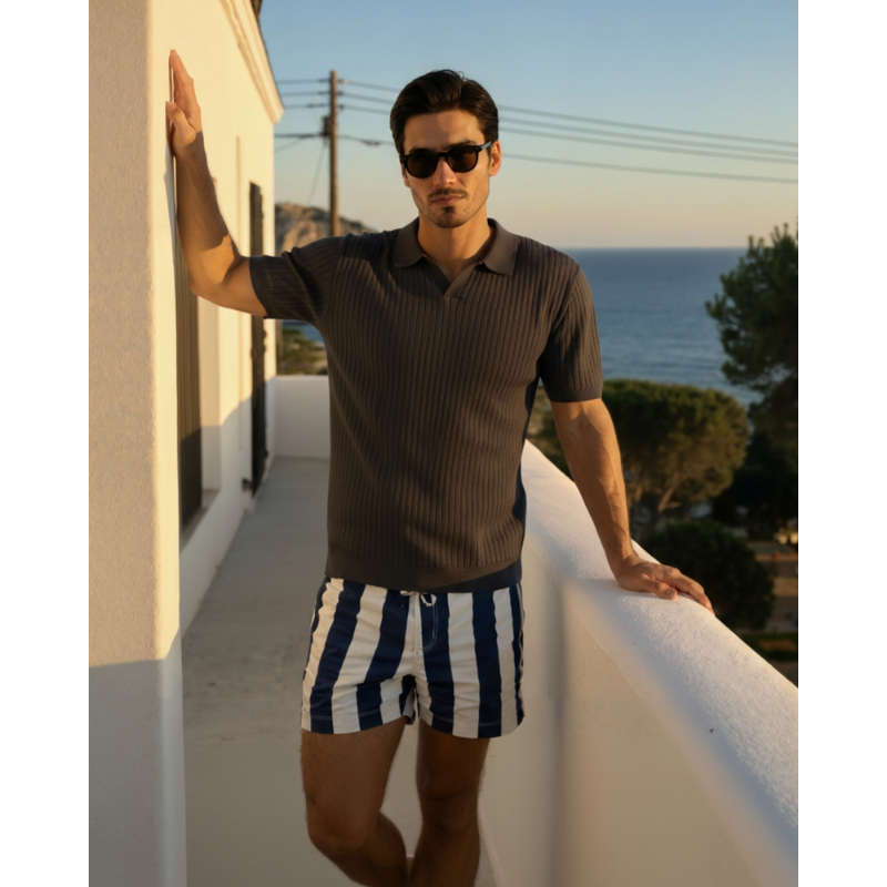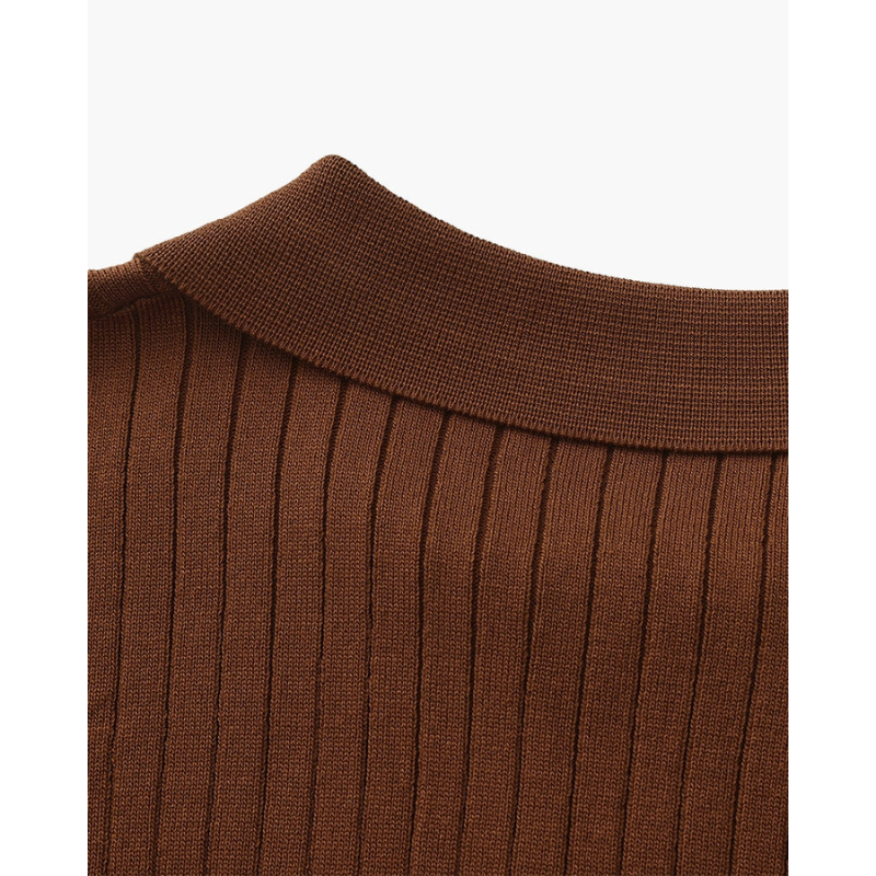 Deze gebreide rib polo is een verfijnde interpretatie van een klassiek ontwerp. Ontworpen voor een ingetogen, stijlvolle uitstraling waarbij comfort en klasse perfect in balans zijn.