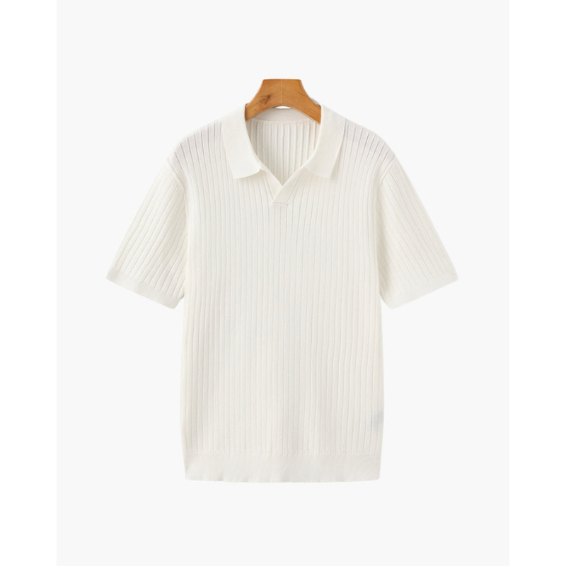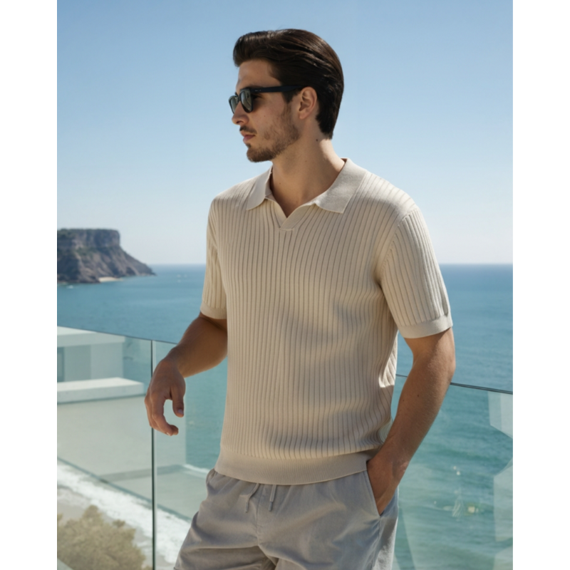 Gebreide Rib Polo met Tijdloze Uitstraling | Heren Polo Shirt | Katoenmix | Ribstructuur | Open Kraag & Casual Elegantie | Satino Mutti