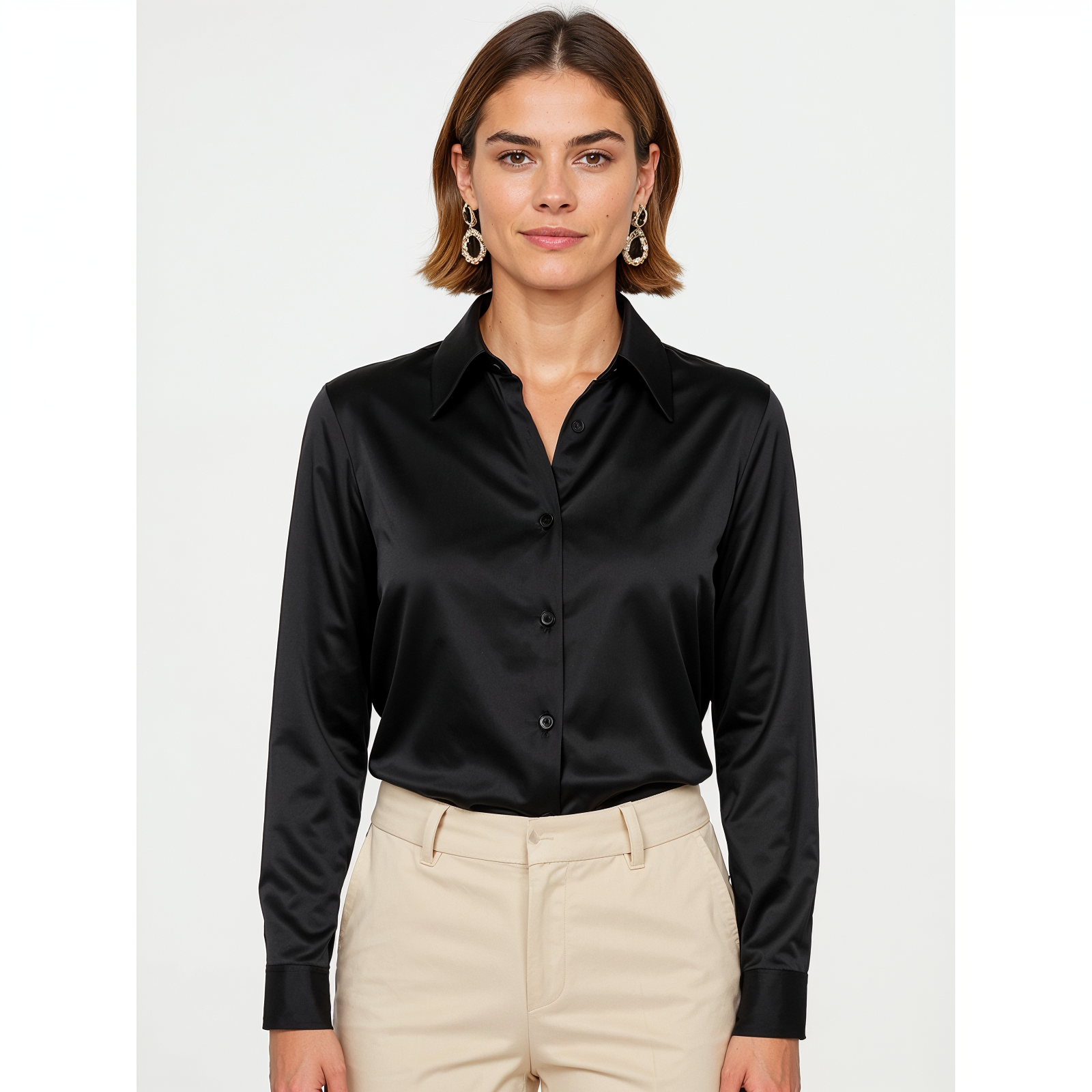 Satijnen Dames Blouse met Knopen – Elegant & Tijdloos