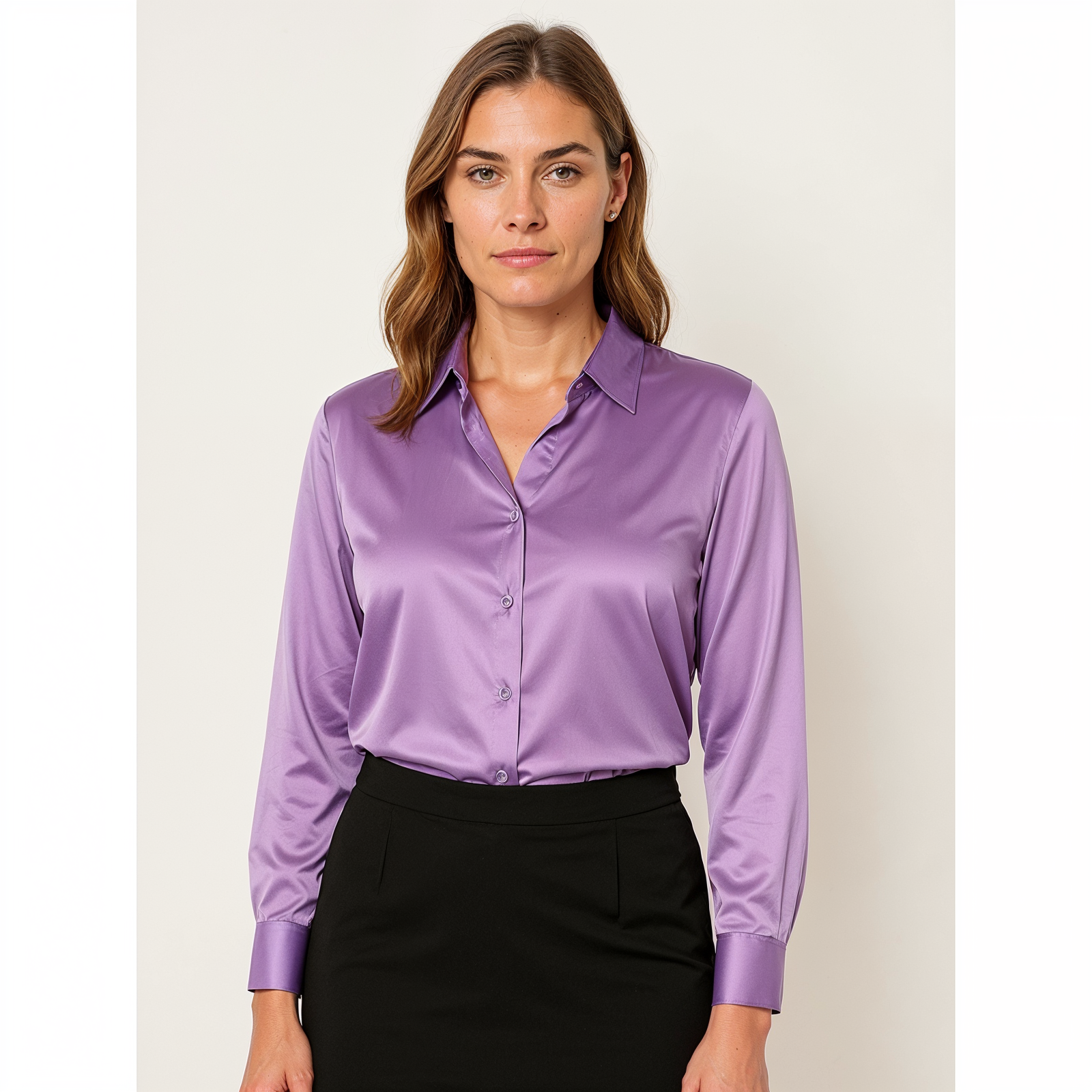 Met deze satijnen dames blouse kies je voor een garderobe-essential die luxe en verfijning moeiteloos samenbrengt – een item dat elke outfit naar een hoger niveau tilt.