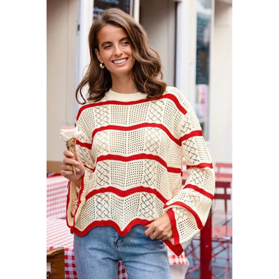 Dames Gestreepte Gebreide Trui – Lange Mouwen