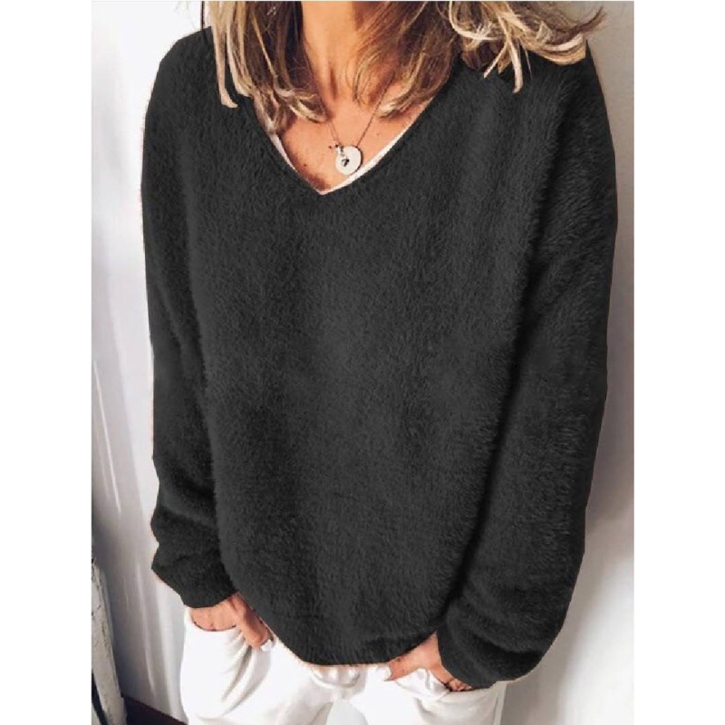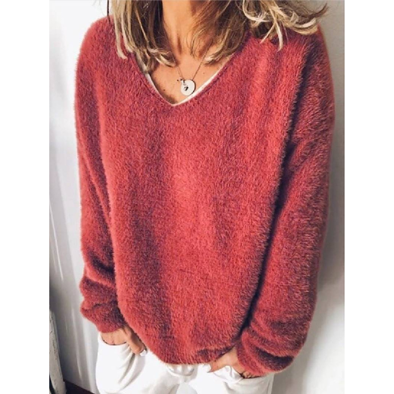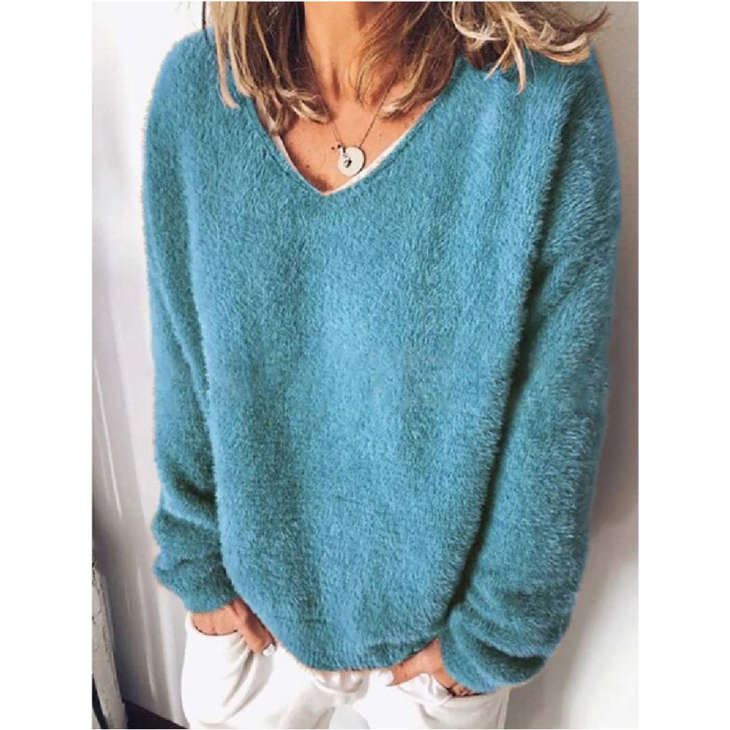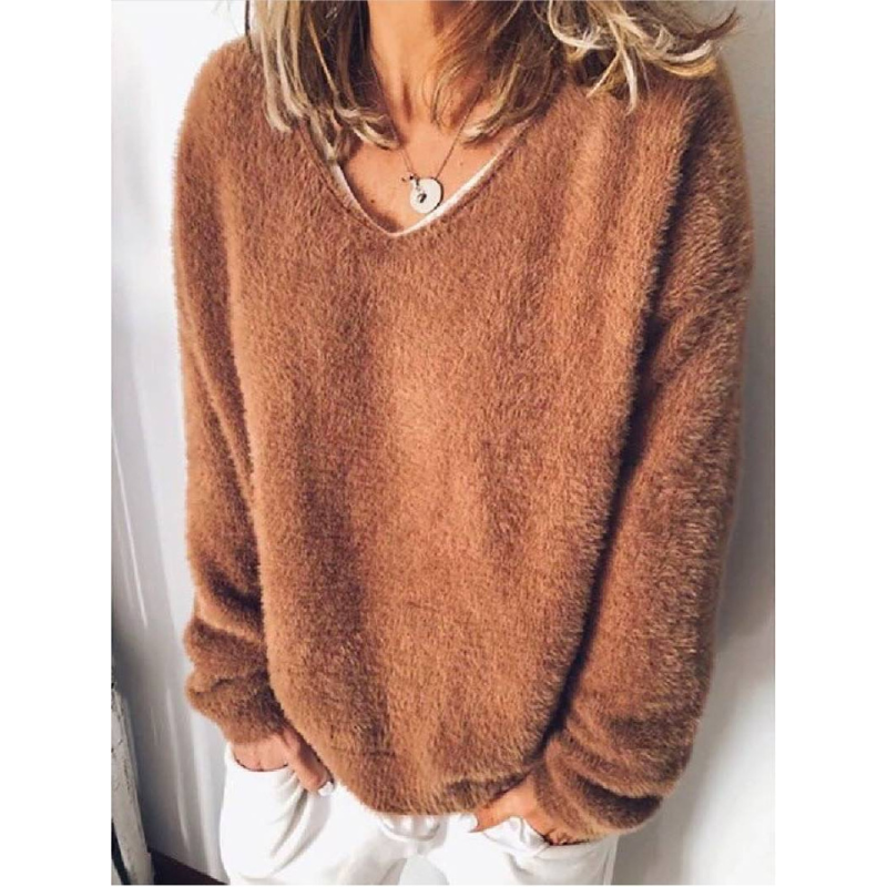 Fluffy V-Hals Trui met Losse Pasvorm | Dames | Zachte Gebreide Wintertrui | Satino Mutti