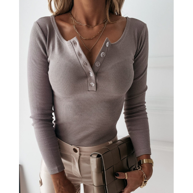 Ribgebreide Longsleeve Top met Knopen | Dames | Zachte Stretchrib | Aansluitende Pasvorm & Elegant Detail | Satino Mutti
