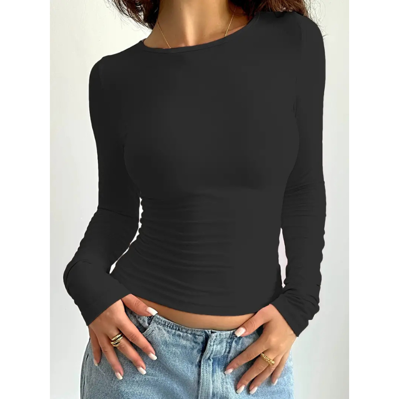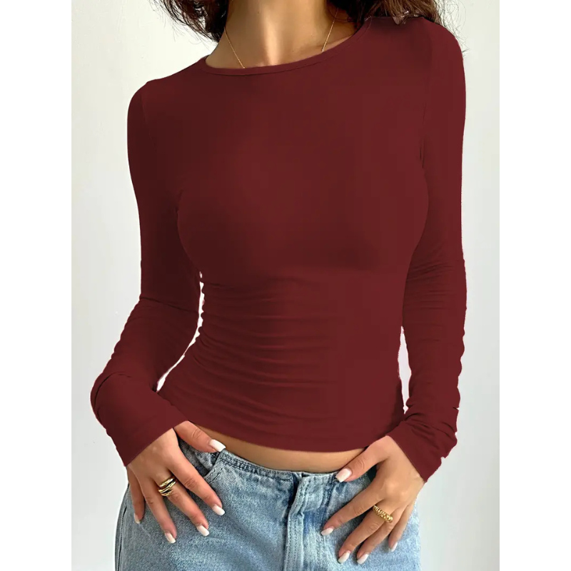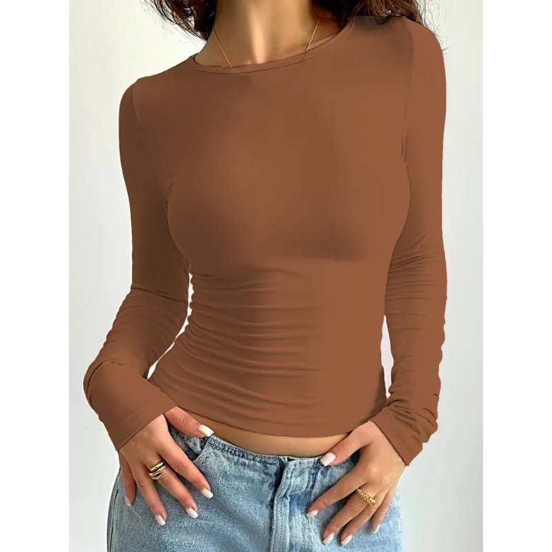 Slim Fit Longsleeve Top met Ronde Hals | Dames | Zacht Stretchkatoen | Tijdloos & Comfortabel | Satino Mutti
