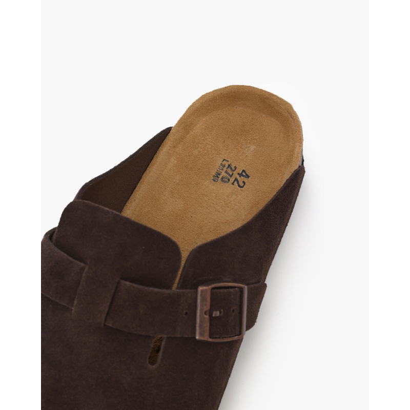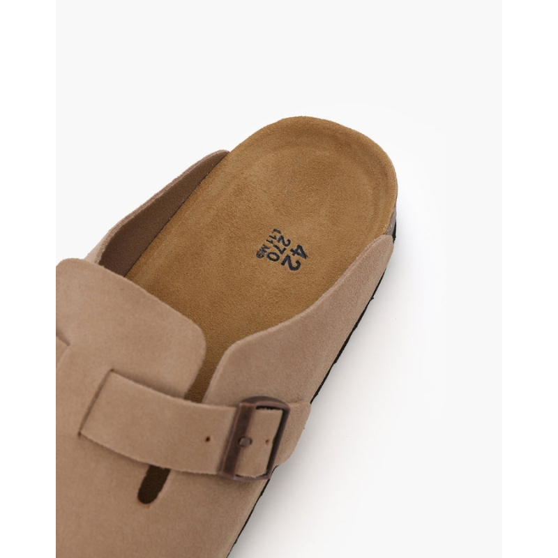 Het bovenwerk is gemaakt van zacht kalfssuède en afgewerkt met fijne stiksels voor een verzorgde en tijdloze look. De volledig lederen binnenzool zorgt voor langdurig comfort en een prettige pasvorm. Dankzij het laceloze ontwerp trek je deze clogs eenvoudig aan en uit, ideaal voor zowel binnen als buiten.