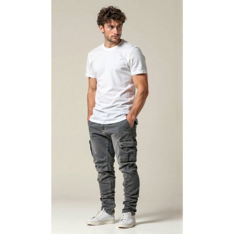 Gemaakt van hoogwaardig stretch-denim, bieden deze jeans een uitzonderlijk draagcomfort en een moderne, verzorgde pasvorm. De strategisch geplaatste cargozakken voegen functionaliteit toe zonder de elegante uitstraling te verliezen — ideaal voor de man die stijl en gebruiksgemak wil combineren.