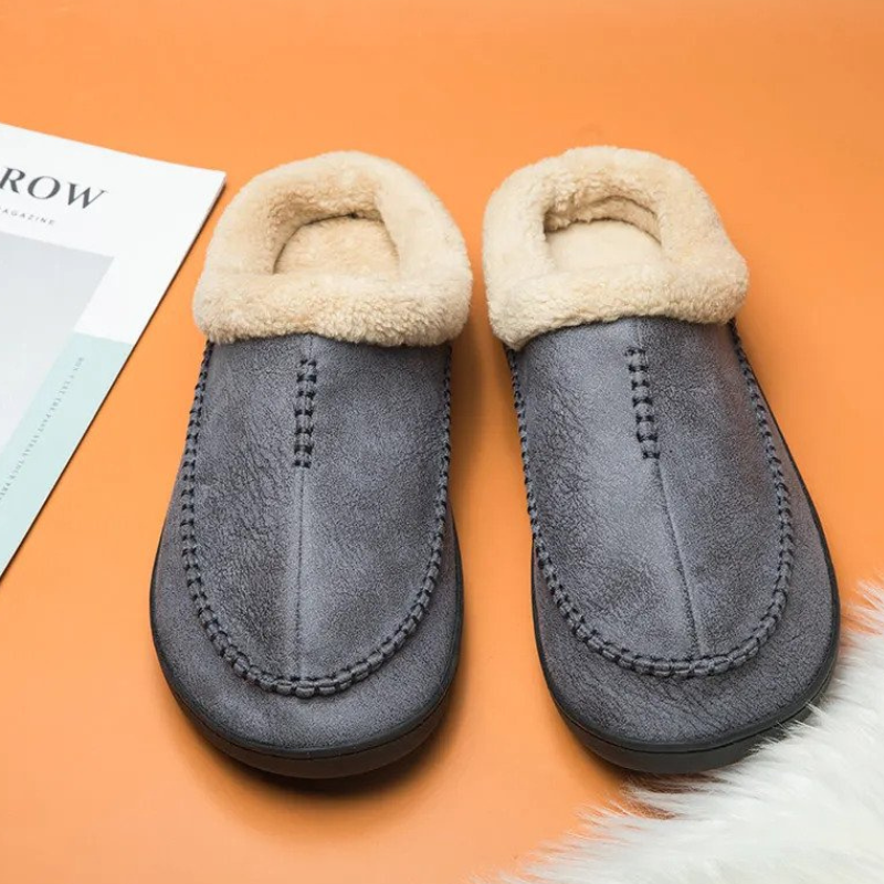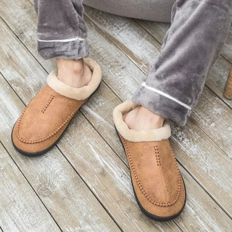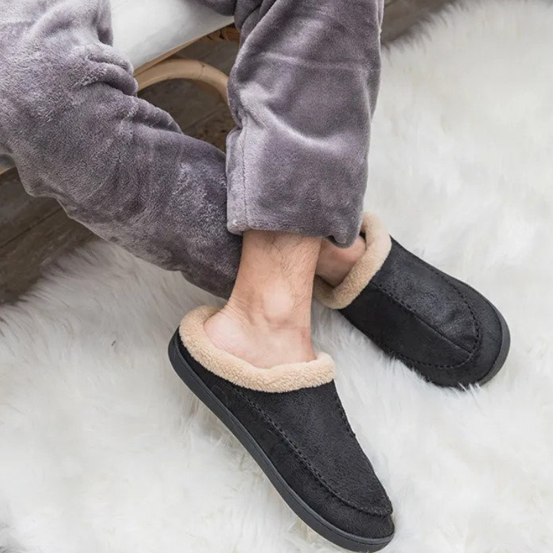 Deze fleecegevoerde heren pantoffels combineren huiselijk comfort met een verzorgde, stijlvolle uitstraling. Ontworpen voor ontspannen momenten thuis, zonder in te leveren op klasse. De zachte binnenvoering houdt je voeten warm tijdens koude herfst- en winterdagen, terwijl het slip-on ontwerp zorgt voor gemak en comfort.
