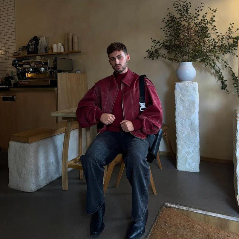 Oversized Unisex Jack Rood | Urban Jas met Contrasterende Stiksels | Satino Mutti