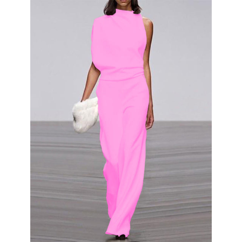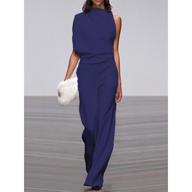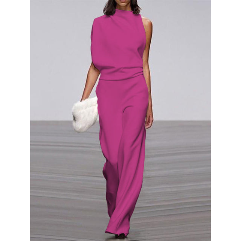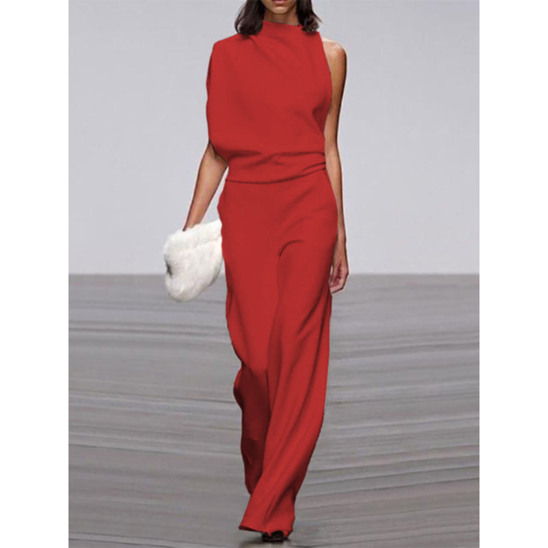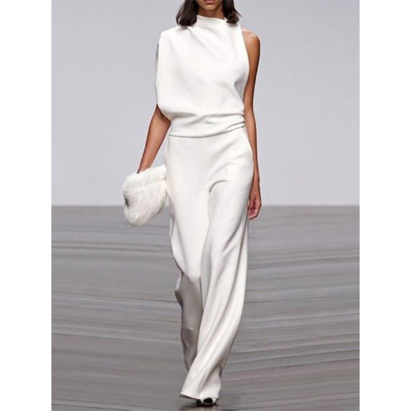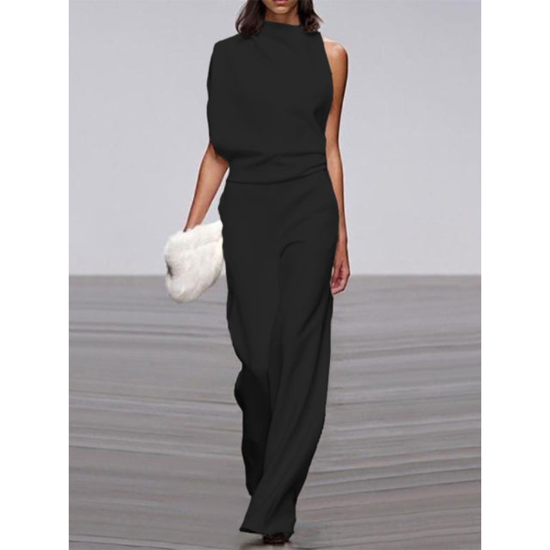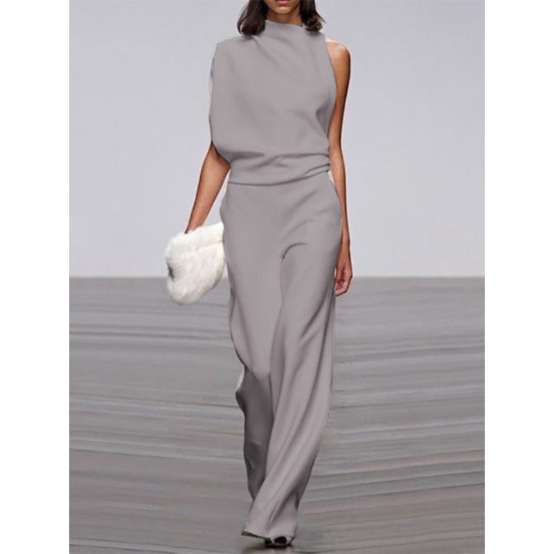 Mouwloze Dames Jumpsuit met Ronde Hals en Wijde Pijpen