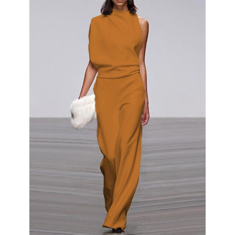 Deze mouwloze dames jumpsuit met ronde hals is een stijlvolle keuze voor elke dag. Het ontwerp oogt modern en elegant, terwijl de pasvorm je figuur op een natuurlijke manier benadrukt. Dankzij de wijde pijpen krijgt de outfit een luxe, luchtige uitstraling die je makkelijk doordraagt van overdag naar ’s avonds.