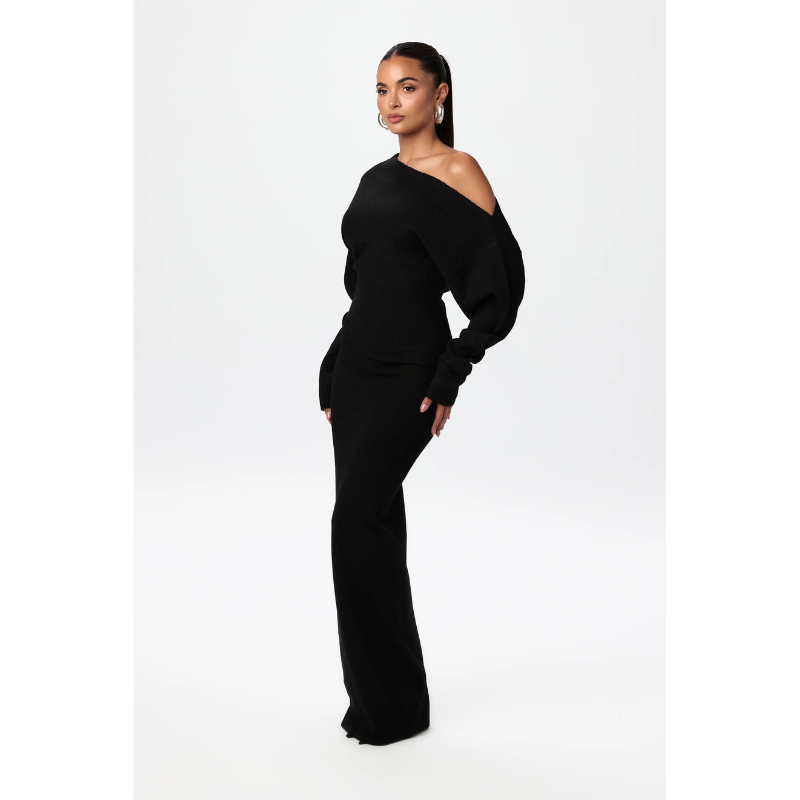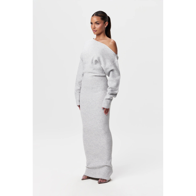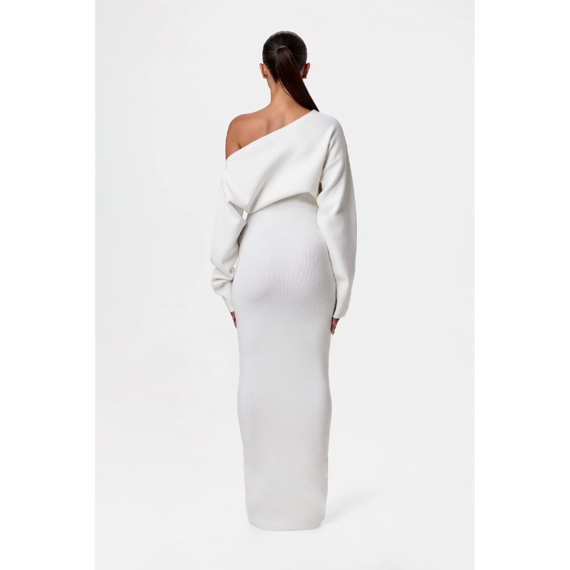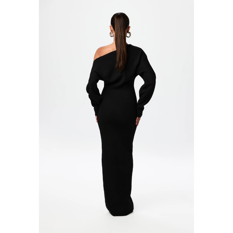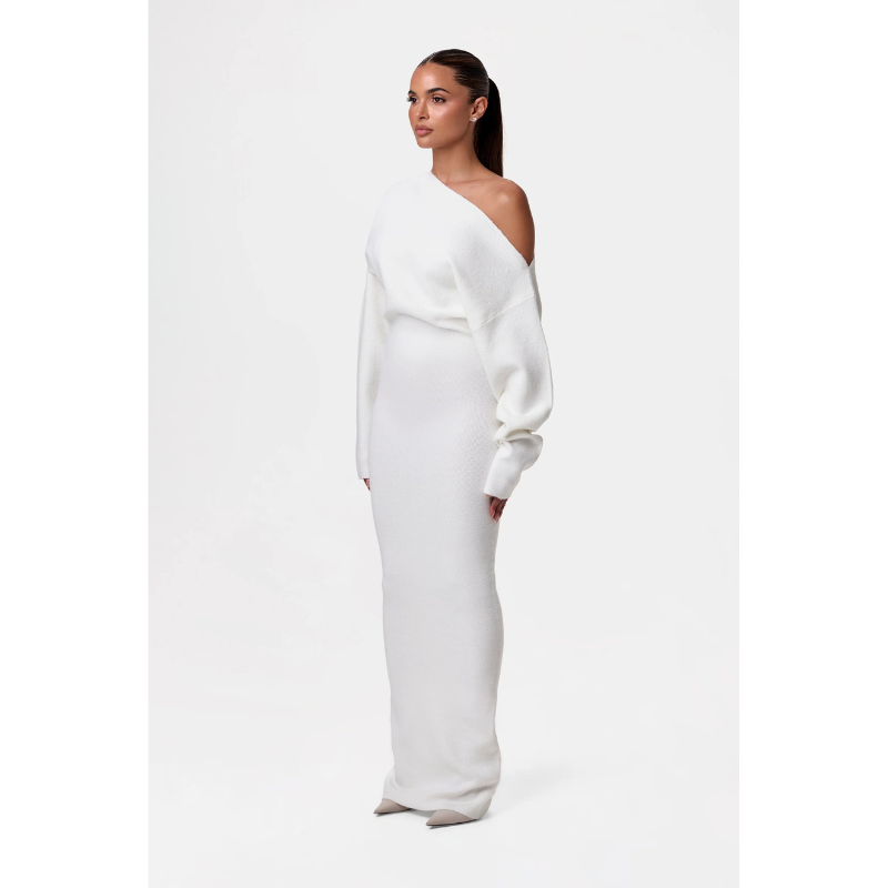 Elegance Knit Off-Shoulder Maxi Jurk