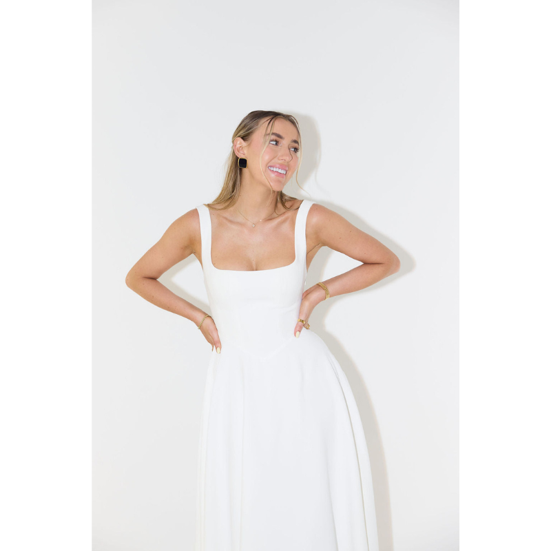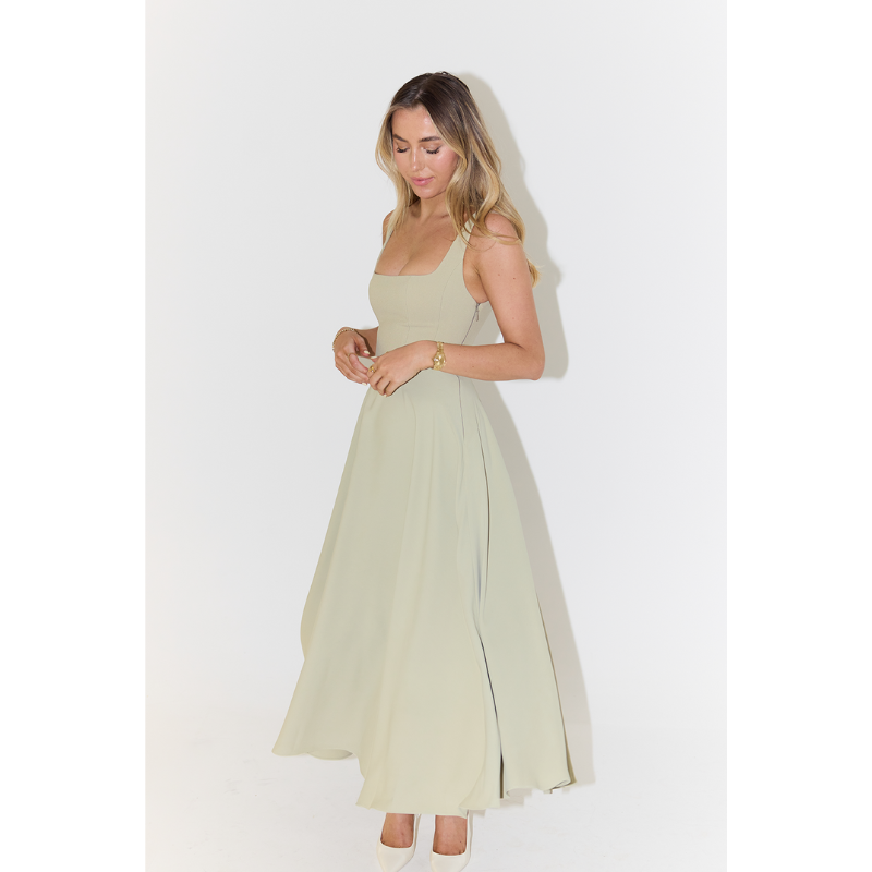 Mouwloze Midi Jurk met Vierkante Halslijn