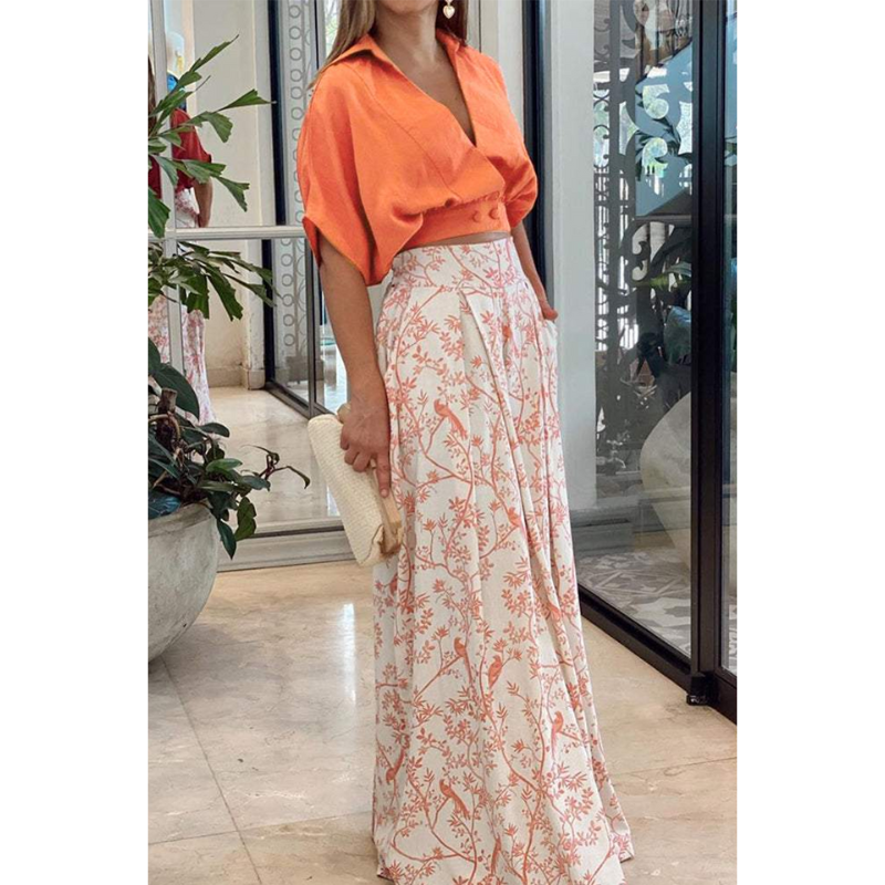 Two Piece Set Dames | Zomeroutfit met Crop Top & Wijde Broek met Bloemenprint | Licht & Comfortabel | Satino Mutti