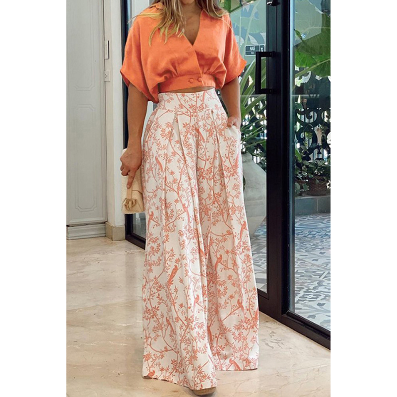 Two Piece Set met Crop Top en Wijde Broek met Bloemenprint