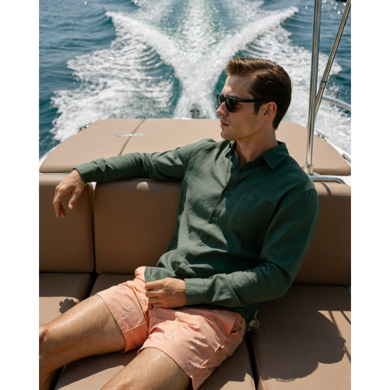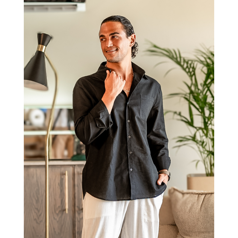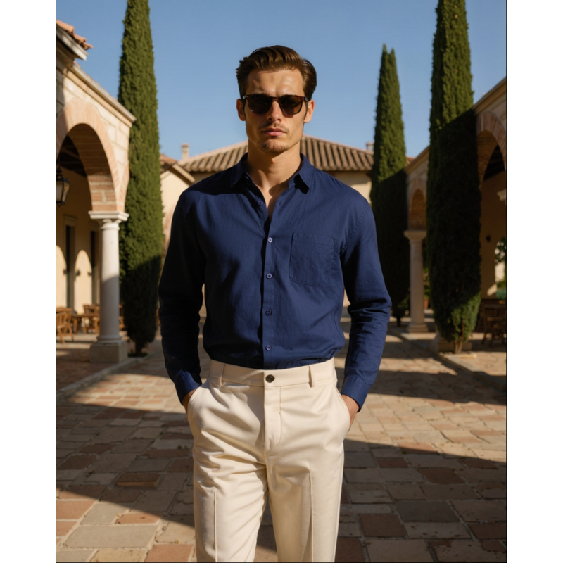 Ontworpen voor moeiteloze klasse en dagelijks comfort. Dit linnen overhemd combineert een luchtige uitstraling met een verfijnde afwerking, ideaal voor warme dagen en ontspannen momenten met stijl.