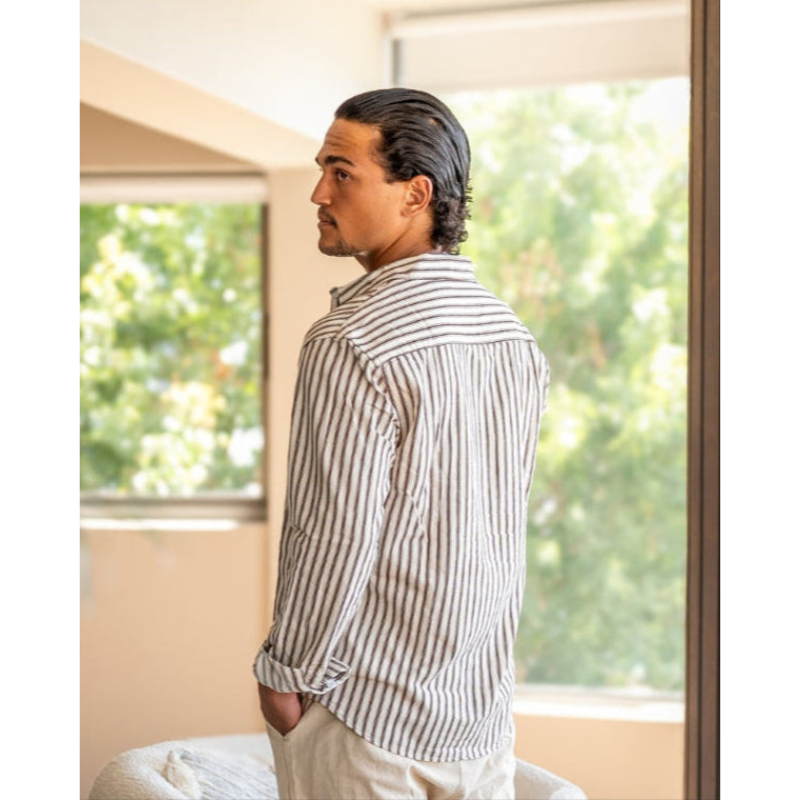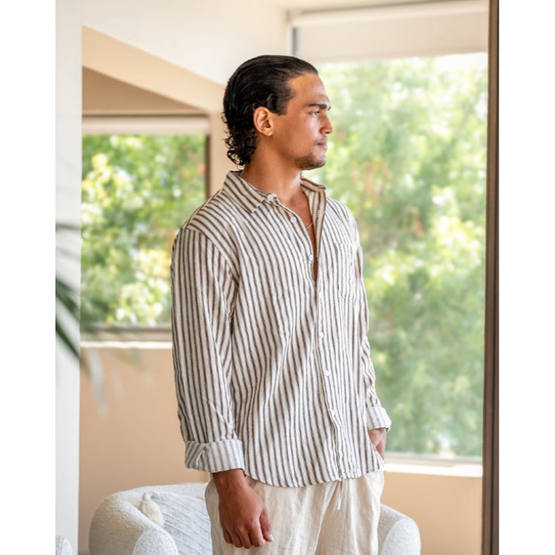 Dit gestreepte overhemd is een tijdloze klassieker met een verfijnde uitstraling. Het ontwerp combineert strakke lijnen met een verzorgde pasvorm en straalt moeiteloze elegantie uit — geschikt voor zowel formele gelegenheden als stijlvolle casual outfits.