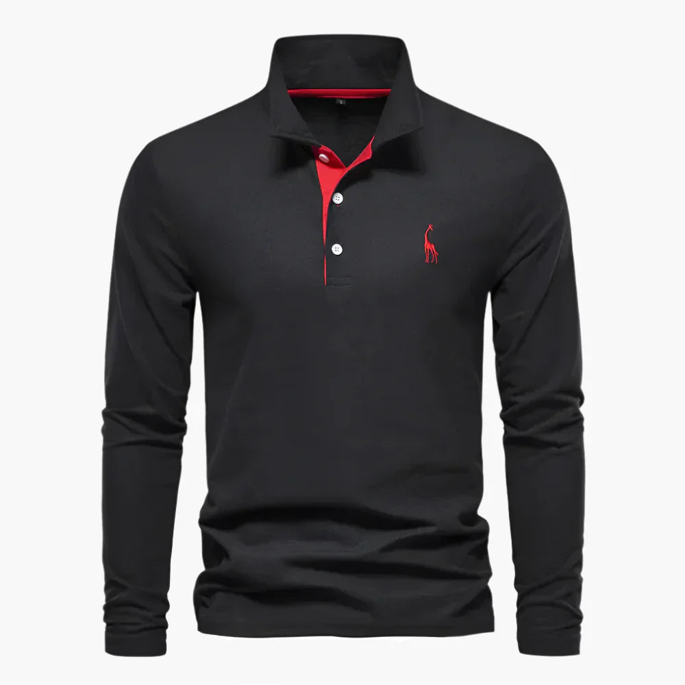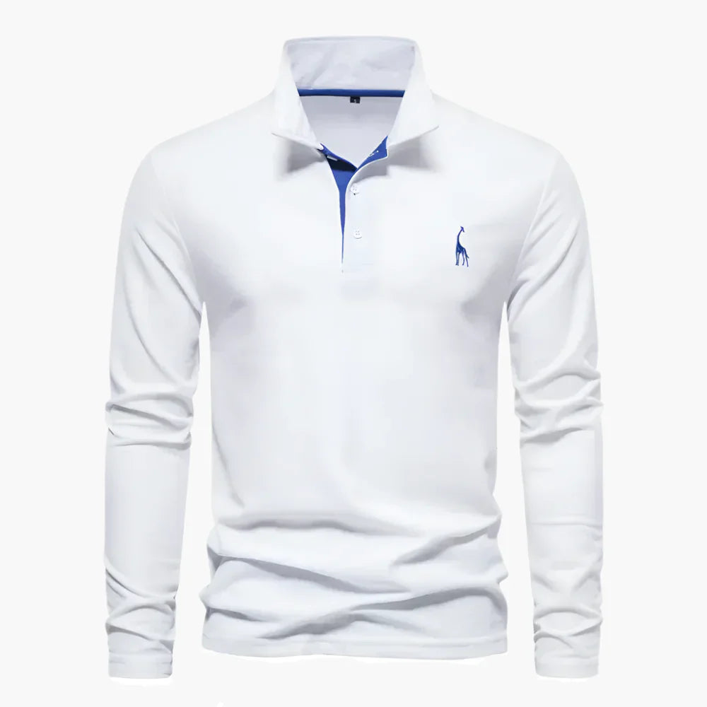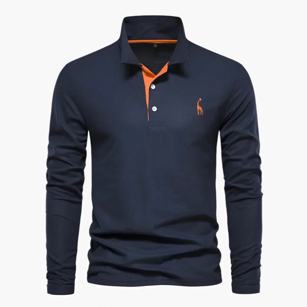Deze heren polo met lange mouwen combineert klassieke elegantie met dagelijks comfort. Het tijdloze ontwerp, afgewerkt met een traditionele kraag en een subtiel geborduurd detail, zorgt voor een verzorgde uitstraling die moeiteloos past bij zowel casual als nettere gelegenheden.