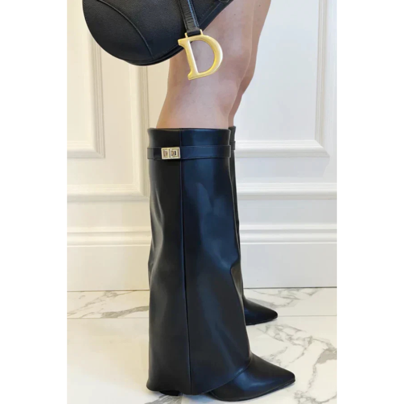 De Elisara laarzen zijn de perfecte combinatie van elegantie en comfort. Gemaakt van hoogwaardig suède, voelen ze zacht aan en hebben ze een luxe uitstraling. Het verborgen sleehakdesign geeft subtiele extra hoogte, terwijl de spitse neus en verfijnde gouden gespdetails zorgen voor een vrouwelijke en stijlvolle look. Dankzij de kniehoge pasvorm zijn deze laarzen veelzijdig te dragen – van casual chic tot avondkleding.