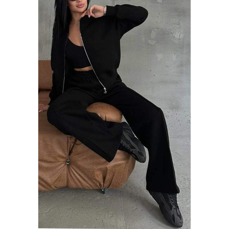 De Rae Street Lounge Set brengt comfort en stijl naadloos samen in één modern tweedelig ontwerp. Het bomberjack met ritssluiting en elastische manchetten zorgt voor een sportieve, gestroomlijnde look, terwijl de wijde jogger een ontspannen silhouet biedt dat perfect aansluit bij hedendaagse streetwear.