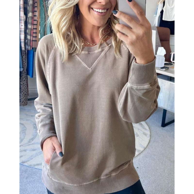 De Maelia Casual Comfort Sweatshirt is het ultieme feel-good item voor elke dag. Met zijn ontspannen pasvorm, zachte stof en ribgebreide details biedt Maelia precies de juiste balans tussen comfort en een verzorgde, minimalistische look. Dit is het sweatshirt waar je vanzelf naar grijpt — voor thuis, onderweg of een nonchalante dag in de stad.