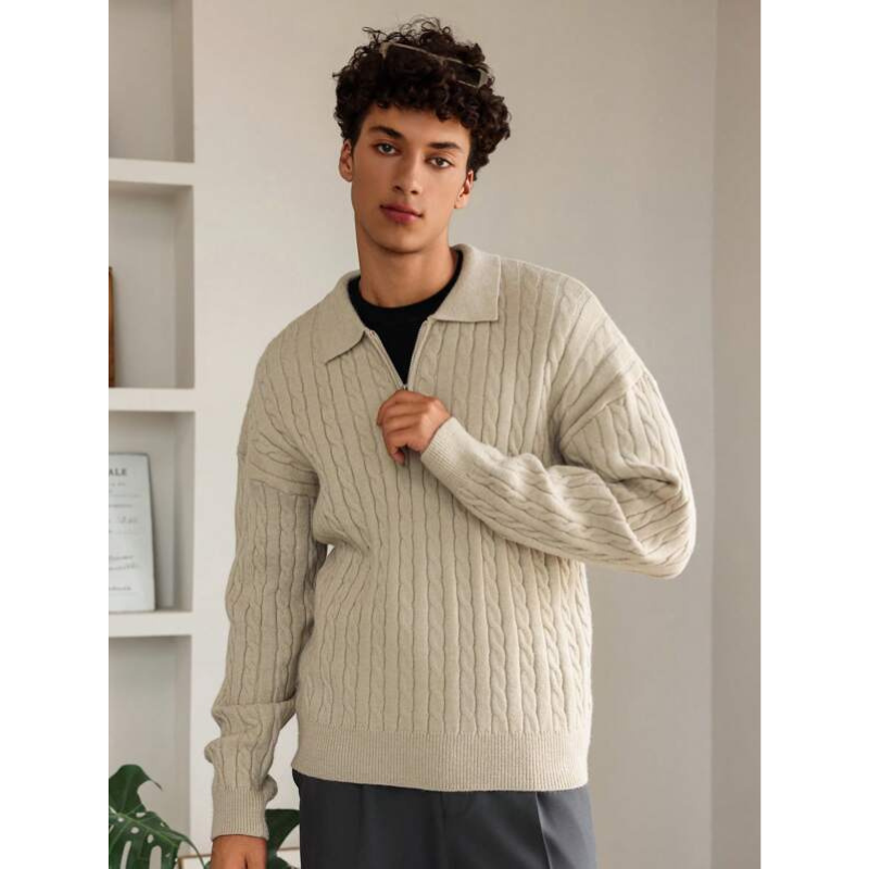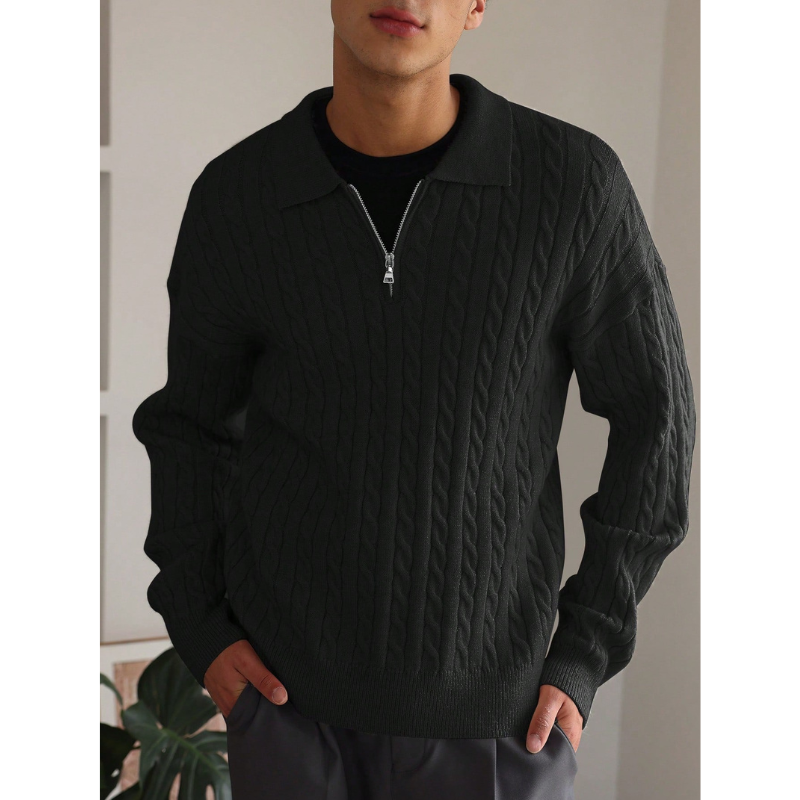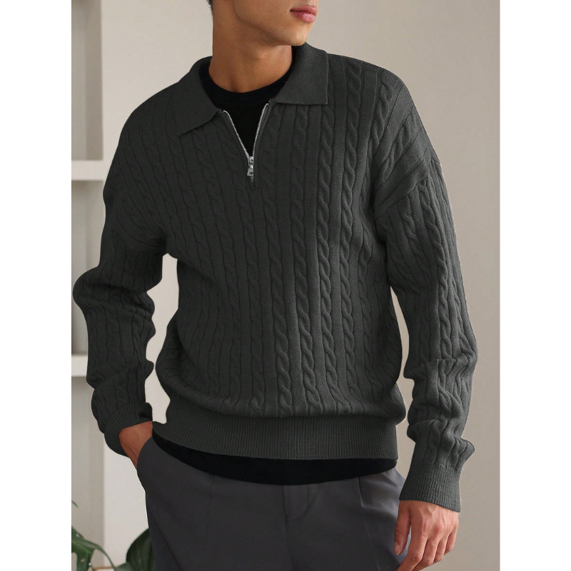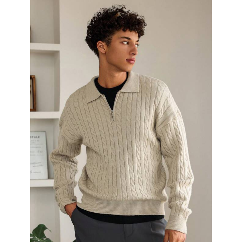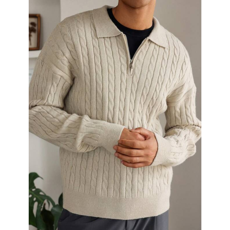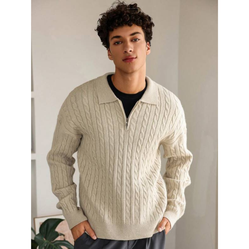 Elarno Kabelgebreide Half-Zip Trui
